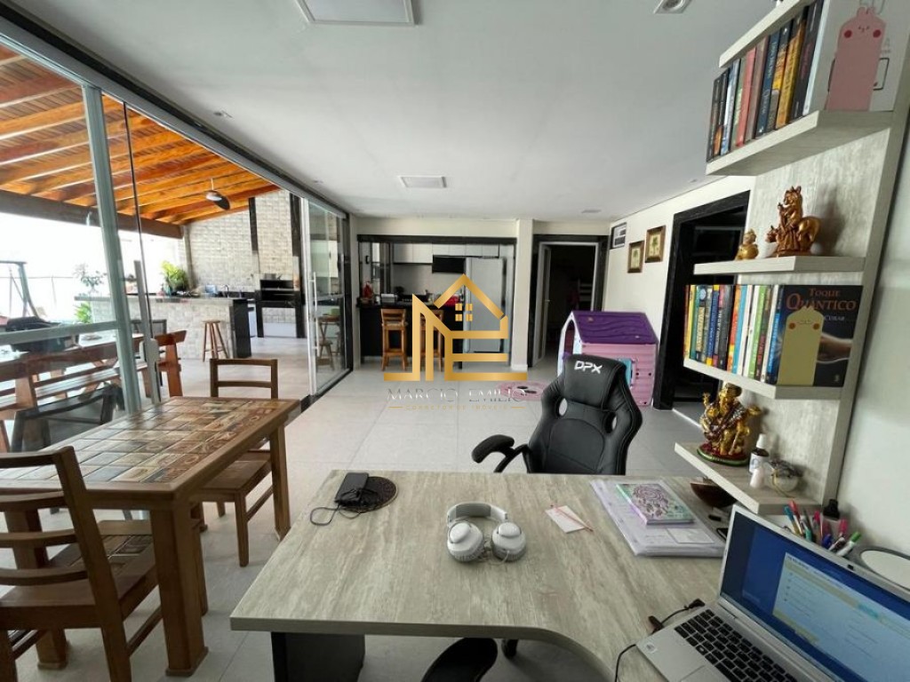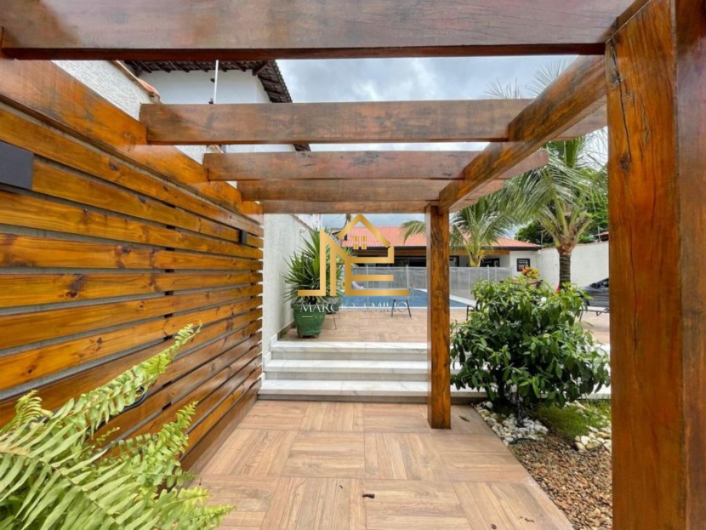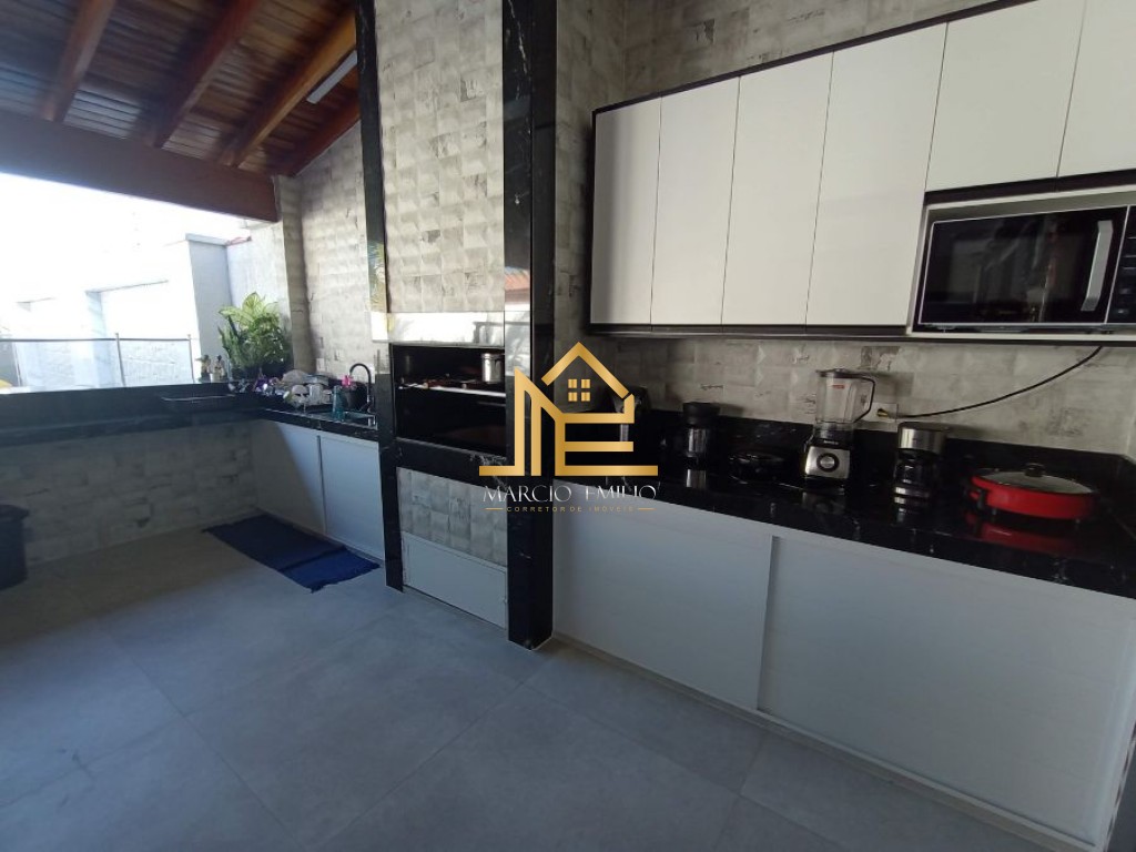 Quintal com vaga para até 5 carros, piscina, espaço gourmet com cozinha e churrasqueira.