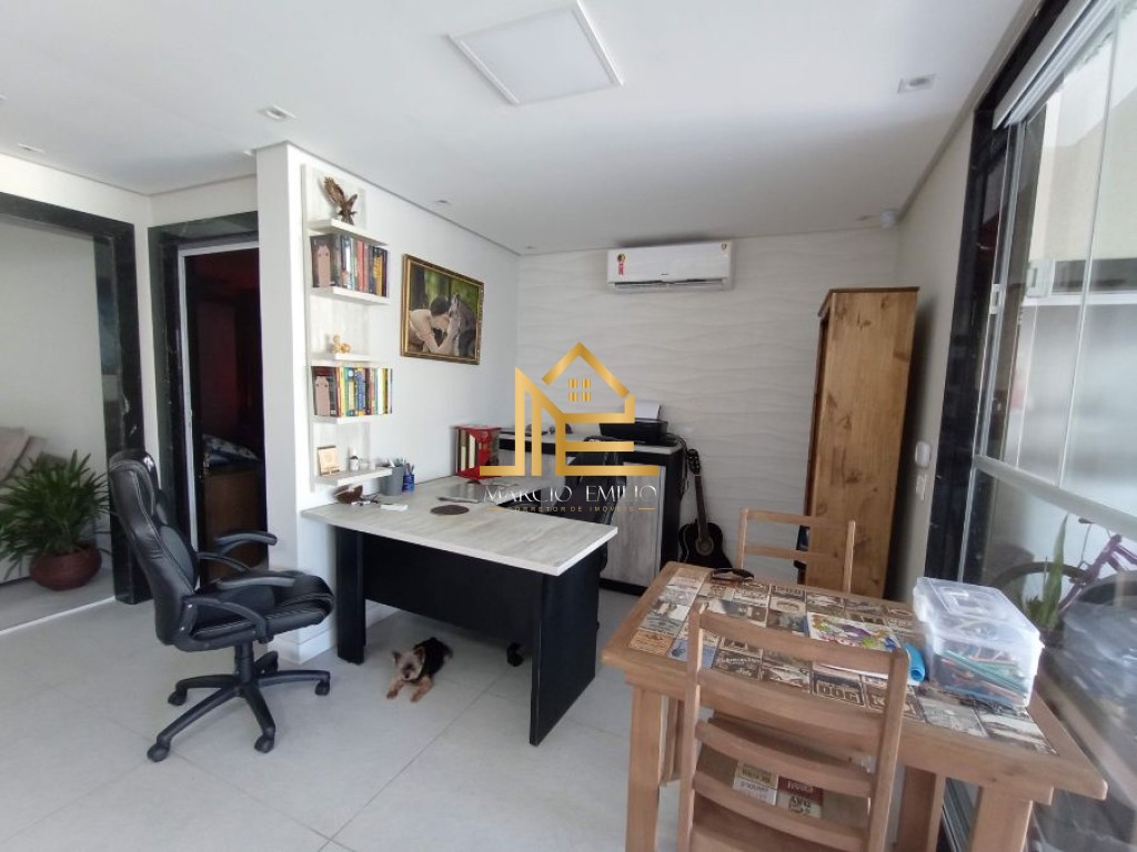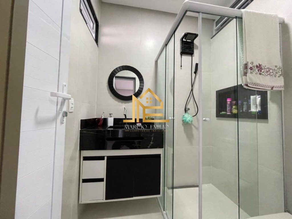São 2 dormitórios suítes, sala ampla 2 ambientes, cozinha planejada, área de serviço, banheiro social.