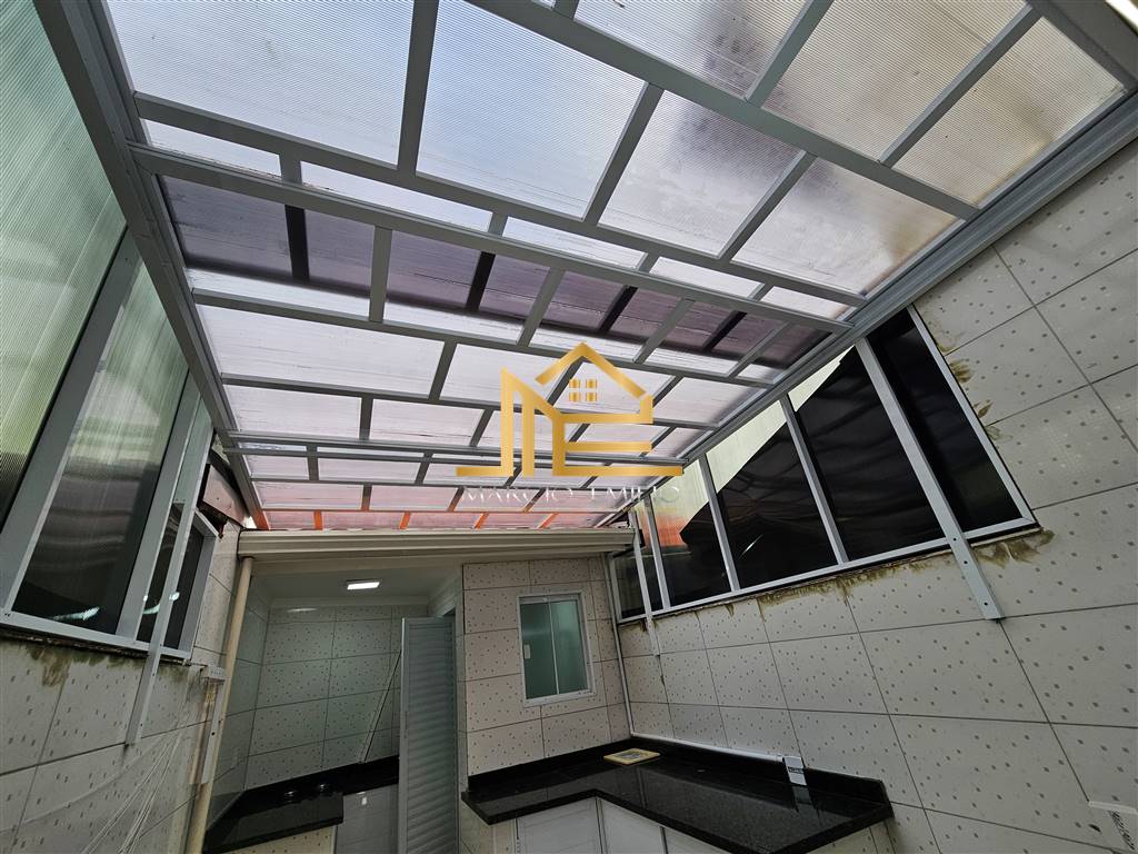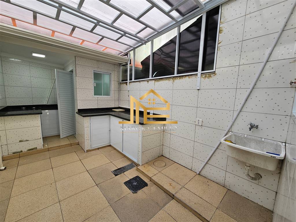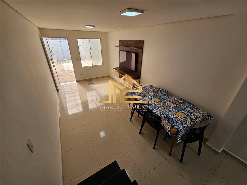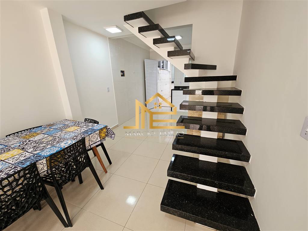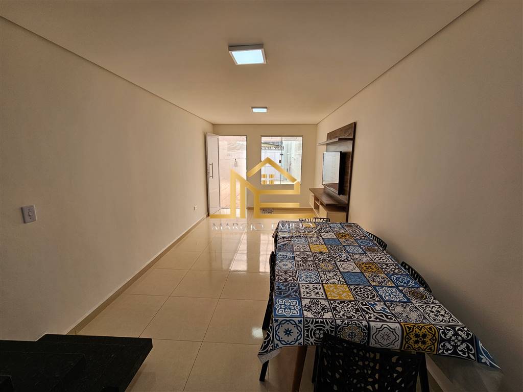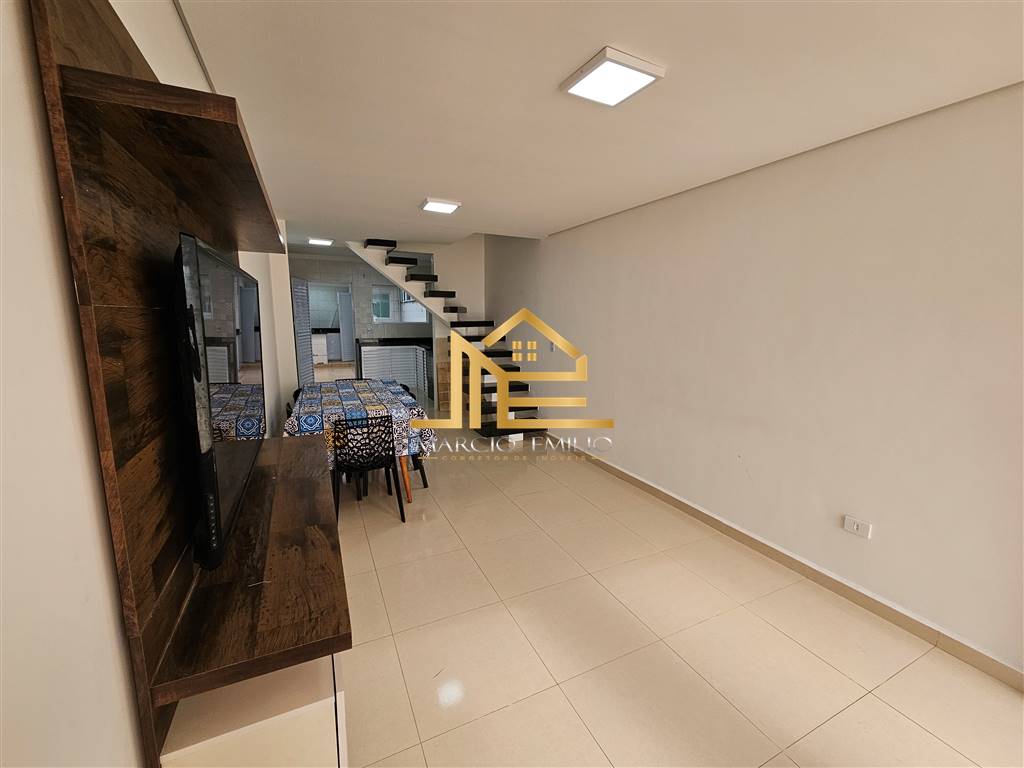 Sobrado em Solemar há 400 da praia, 2 dormitórios, 2 vagas, espaço Gourmet com cobertura retrátil, WC externo, semi mobiliado.